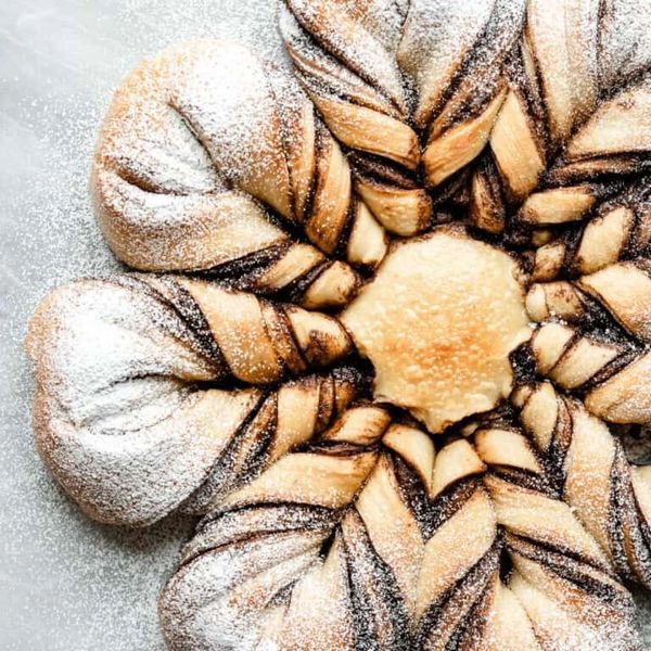 Pictured is Brown Sugar & Cinnamon Sourdough Star Bread freshly baked by Kristin, owner of local Fields and Flour.